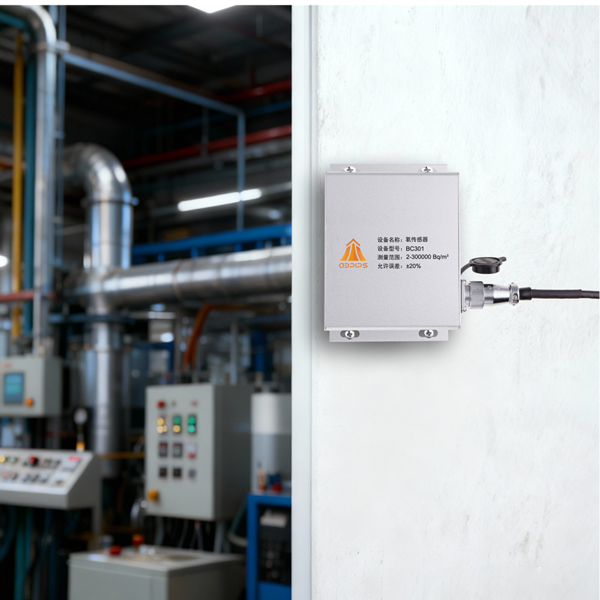 BC301 型氡传感器主要通过空气静态扩散、静电收集的方式测量环境中的氡气浓度,利用氡气及其衰变产物的放射性特性,通过硅探测器及信号采集系统获得 α 计数并计算氡气浓度,实现环境中氡浓度的长期持续监测。