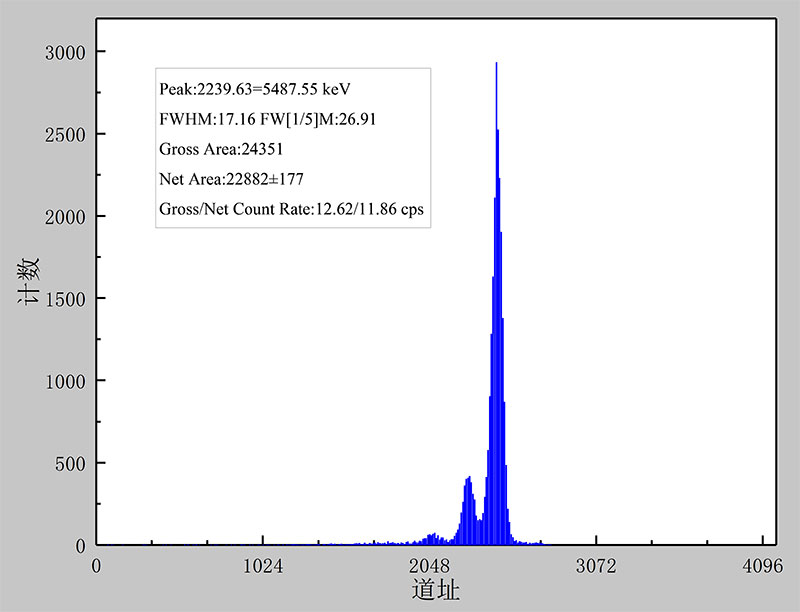 单路 α谱采集方案:基于半导体硅探测器的 α 能谱测量系统,包含信号采集、电荷灵敏前置放大、高斯整形、谱线转换与通信等整套方案设计。用于 α 信号的数字成型及谱线收集。